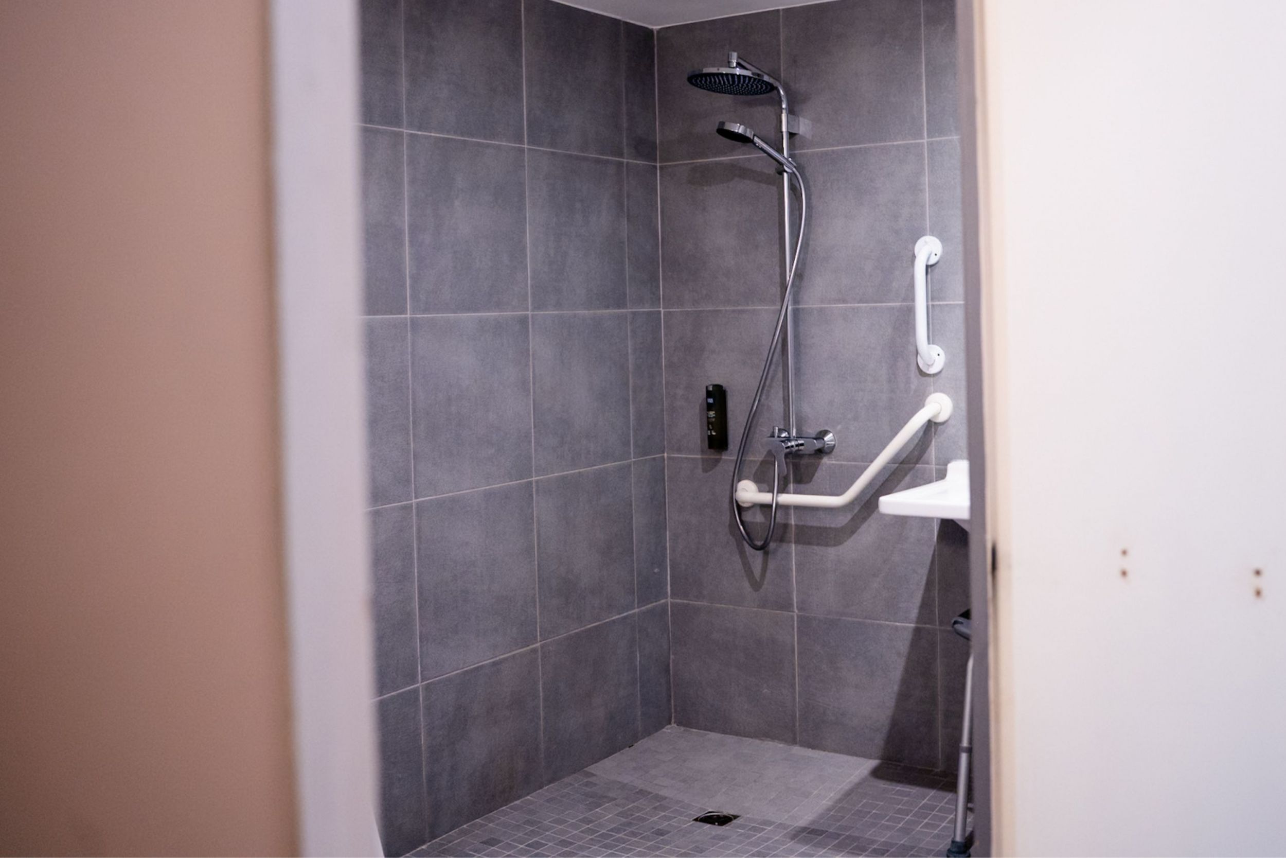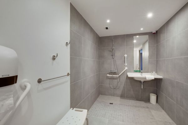 Its large adapted bathroom has a walk-in shower, a hairdryer and toiletries.