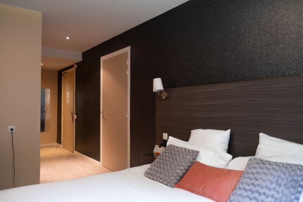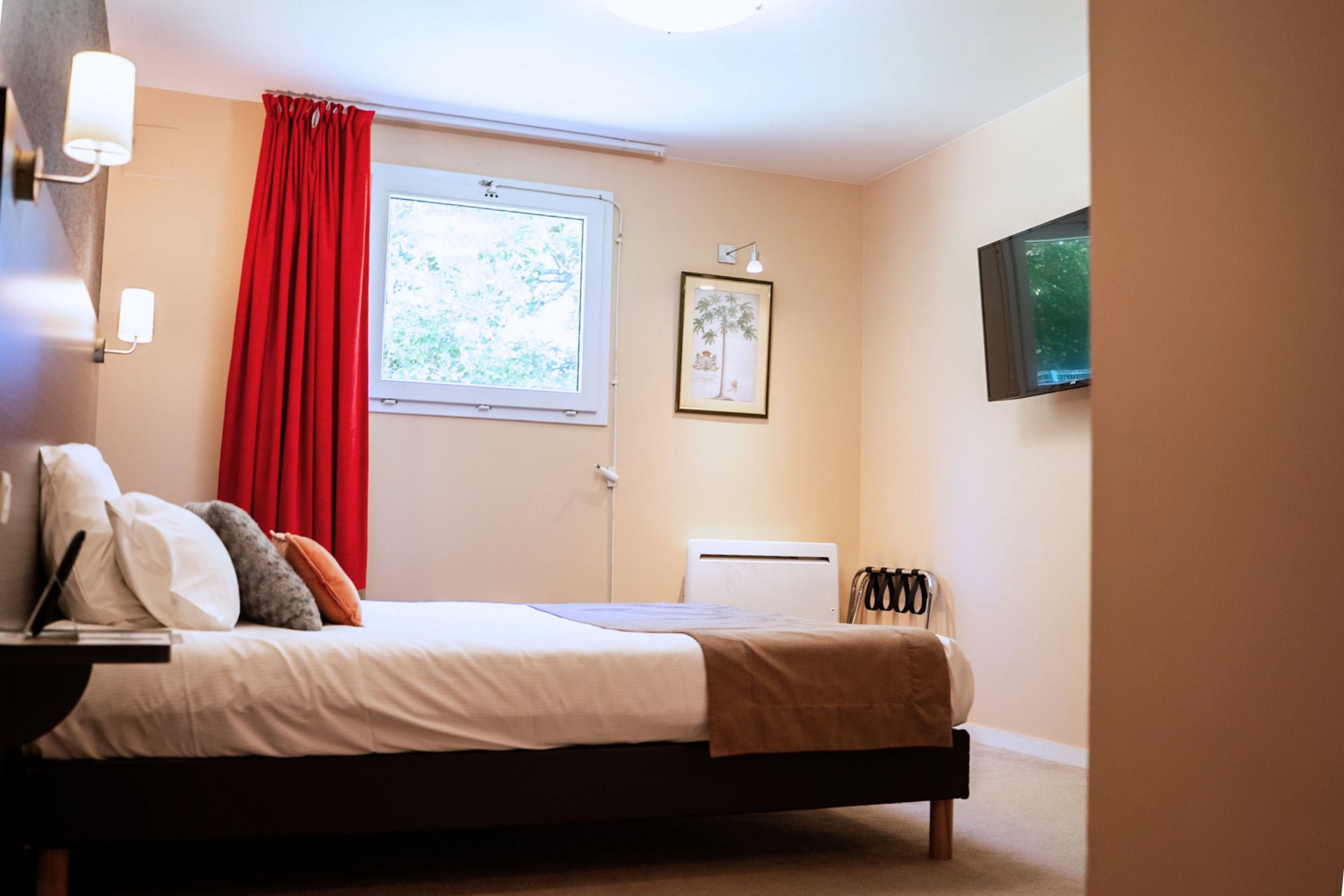 This very spacious, quiet and comfortable room has a double bed with duvet, a 43-inch connected TV, WiFi fiber, a desk and a wardrobe/wardrobe.